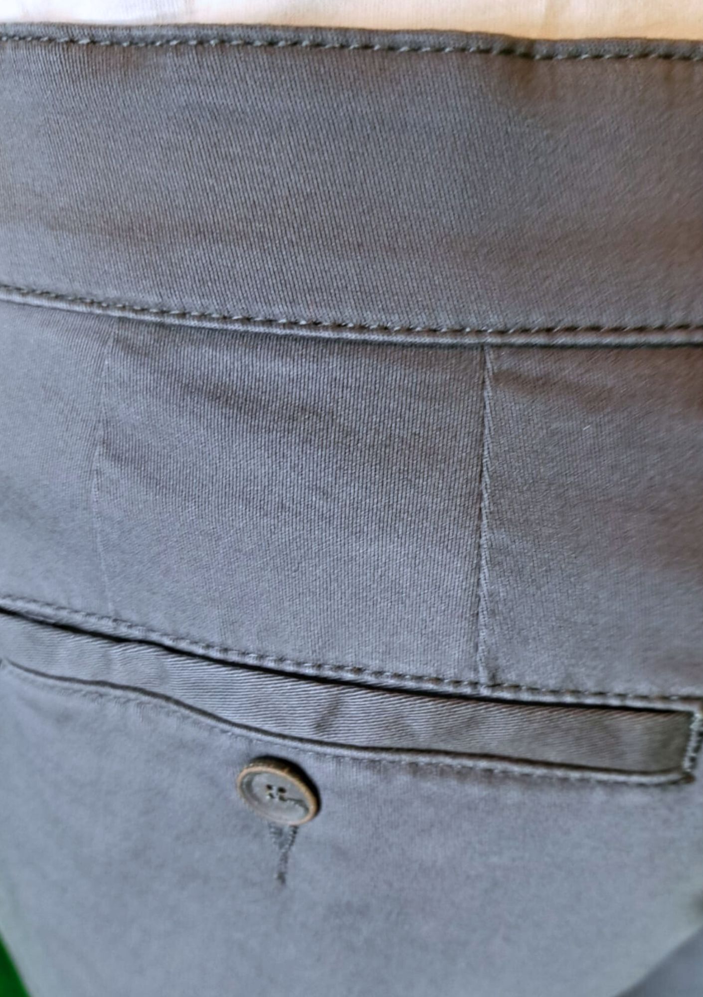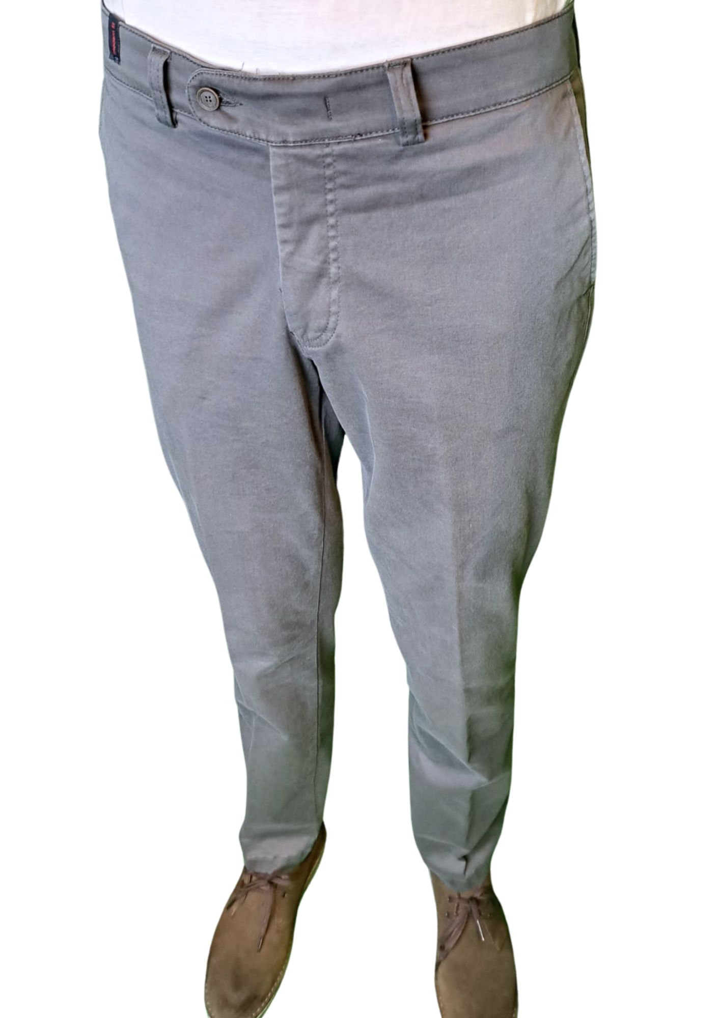 Deze pantalon van San Siro in chino model is een broek die bijna altijd goed is. Met steekzakken en gepaspeleerde achterzakken is deze katoenen broek net even geschikter voor gelegenheden dan een jeans. De kleur is zacht grijs. Naast de gewone maten ook ingekocht in kwart- (korte-) maten.