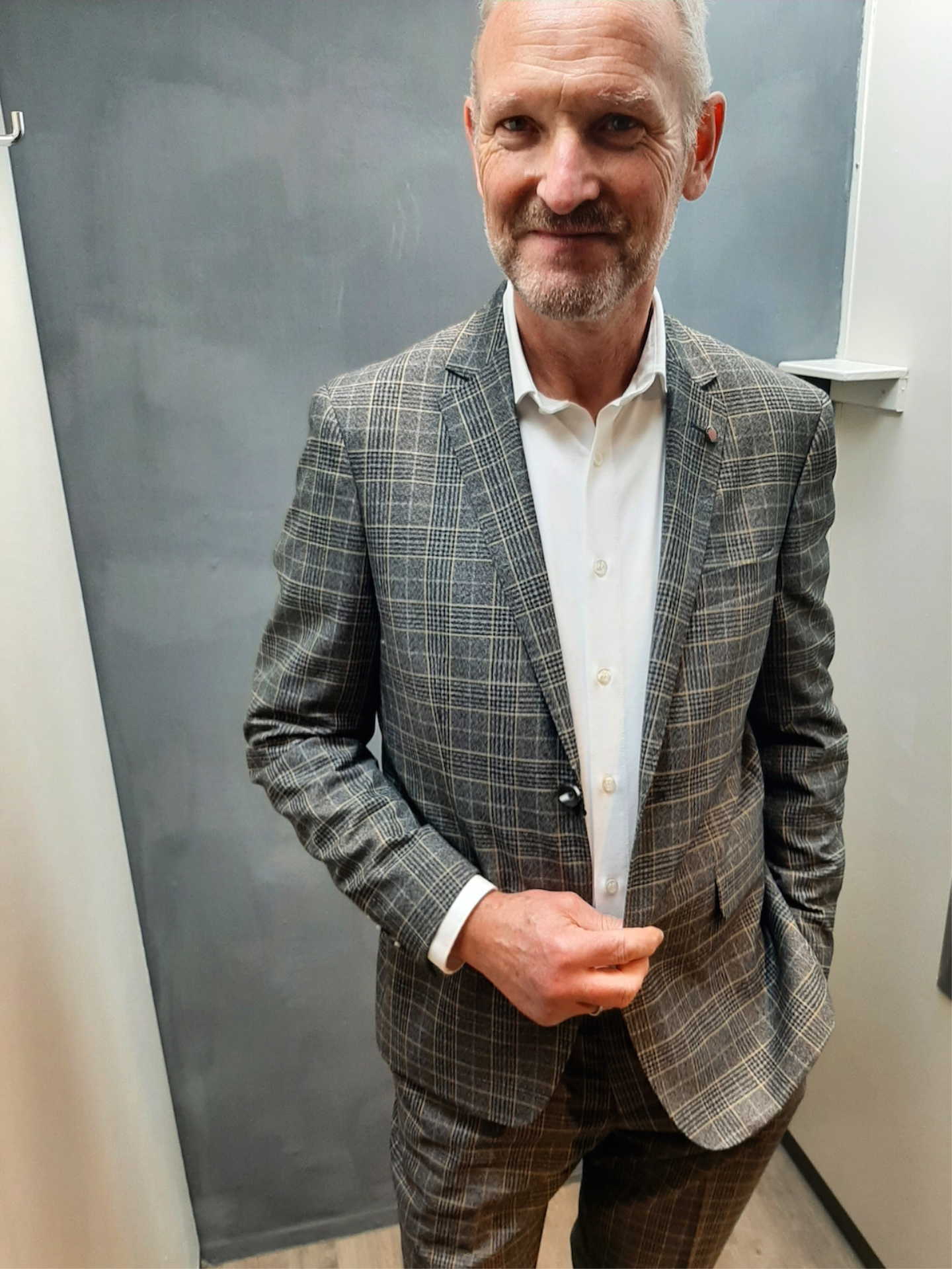 | Omschrijving | Geruit slimfit kostuum van Falabella |