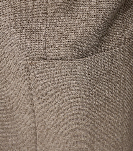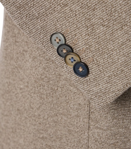 Dit colbert is halfgevoerd, hierdoor draagt het colbert ook prettiger omdat het soepeler aanvoelt. Het maken van een dergelijk colbert is net wat lastiger omdat alle naden in het zicht zijn en deze mooi afgewerkt dienen te worden. Het pochet is de voering van de borstzak en kan desgewenst naar binnen worden gestoken. De warme kleur beige van het colbert is goed te combineren met blauw, met jeans maar gaat ook goed met zwart of juist met zandkleurige pantalons.