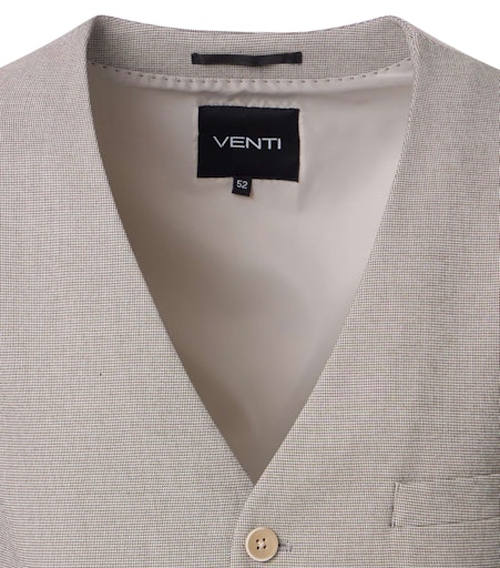 Dit Venti gilet is het bijpassende middenstuk van onze Mix & Match kostuums van Venti. Net als bij colbert en pantalon kunt u het gilet los kopen, zodat u eenvoudig de juiste maat kiest of het kunt combineren met andere onderdelen.