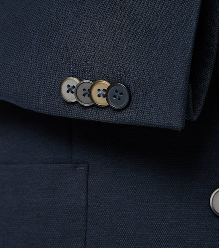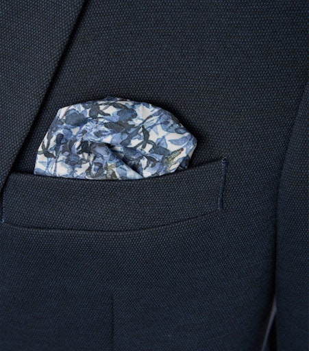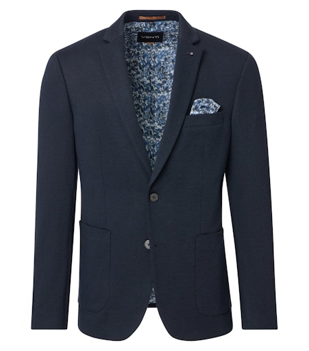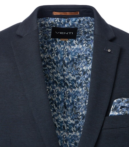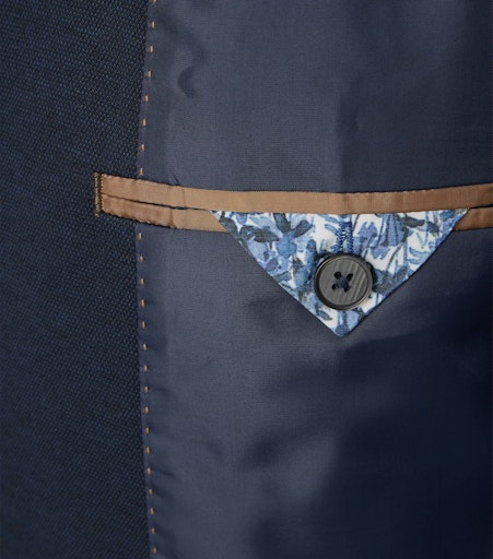 Dit is het colbert dat eigenlijk altijd goed is. de kleur is iets gemeleerd dus gemakkelijk te combineren bij veel pantalons, omdat de kleur gemakkelijk wordt opgepakt. Het pochet is de voering van het borstzakje. Desgewenst kan dit worden teruggestopt.