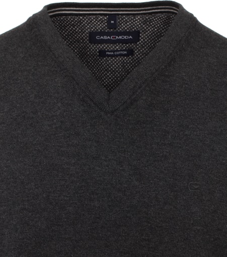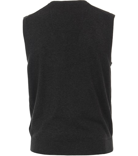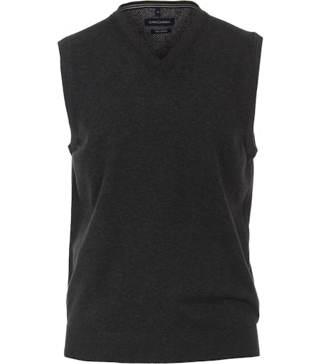 Deze grijze spencer van Casa Moda (ook wel slipover genoemd) is een mouwloze trui met V-hals, gemaakt van 100% katoen. De trui heeft een boord aan de onderkant en een regular fit voor een comfortabele pasvorm.