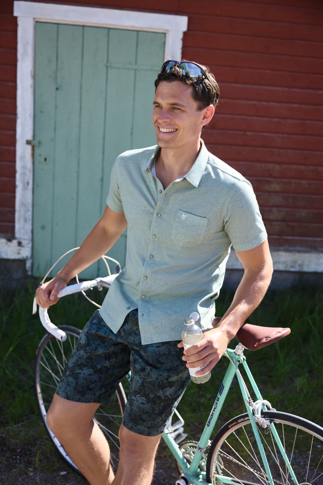 Poloshirt of overhemd? Dit polohemd combineert het beste van beide. Het model oogt als een overhemd, maar is gemaakt van de soepele, ademende stof die u kent van poloshirts. De mix van 68% katoen en 32% polyester zorgt voor een kreukvrij en superzacht resultaat. Daarbij is dit polohemd sneldrogend, drogerbestendig en eenvoudig in onderhoud. Voorzien van een borstzak. Ingekocht in lindegroen en blauw