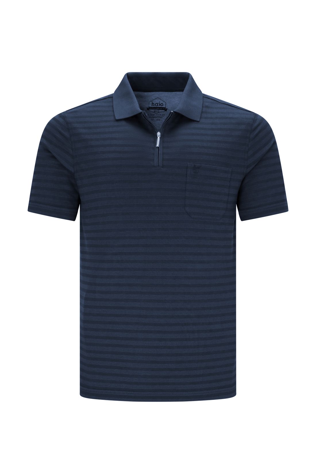 Poloshirt met borstzak van Hajo, gemaakt van katoen en polyester. Dit superzachte shirt voelt prettig aan op de huid en biedt het draagcomfort van katoen met het gemak van polyester. Het ingebreide subtiele streeppatroon geeft het shirt net wat extra’s. Voorzien van een rits bij de polosluiting en een handige borstzak. Sneldrogend én drogerbestendig, zodat u het snel weer kunt dragen.