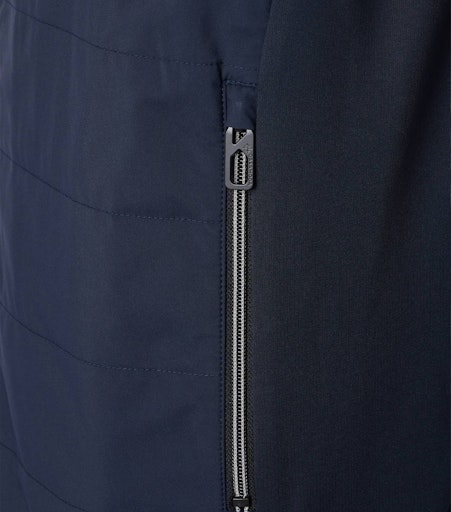 De donkerblauwe kleur maakt de bodywarmer makkelijk te combineren met verschillende outfits.