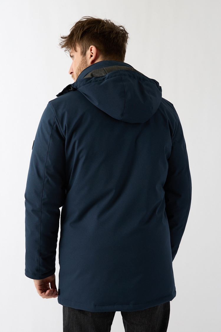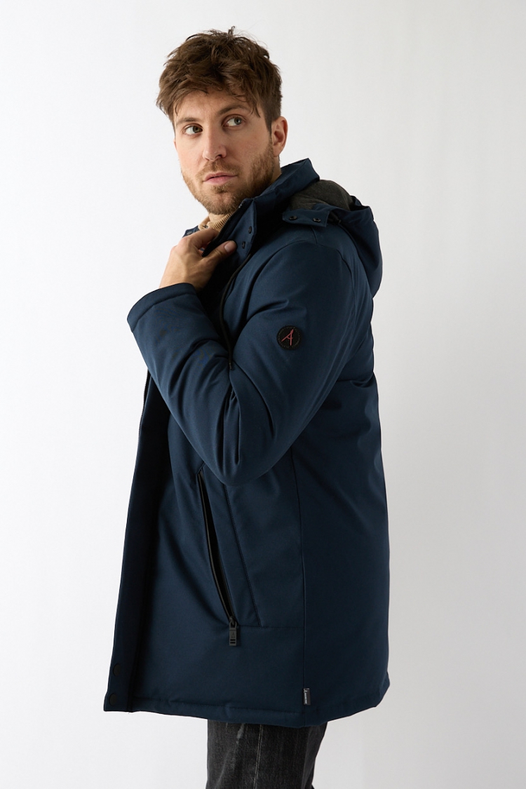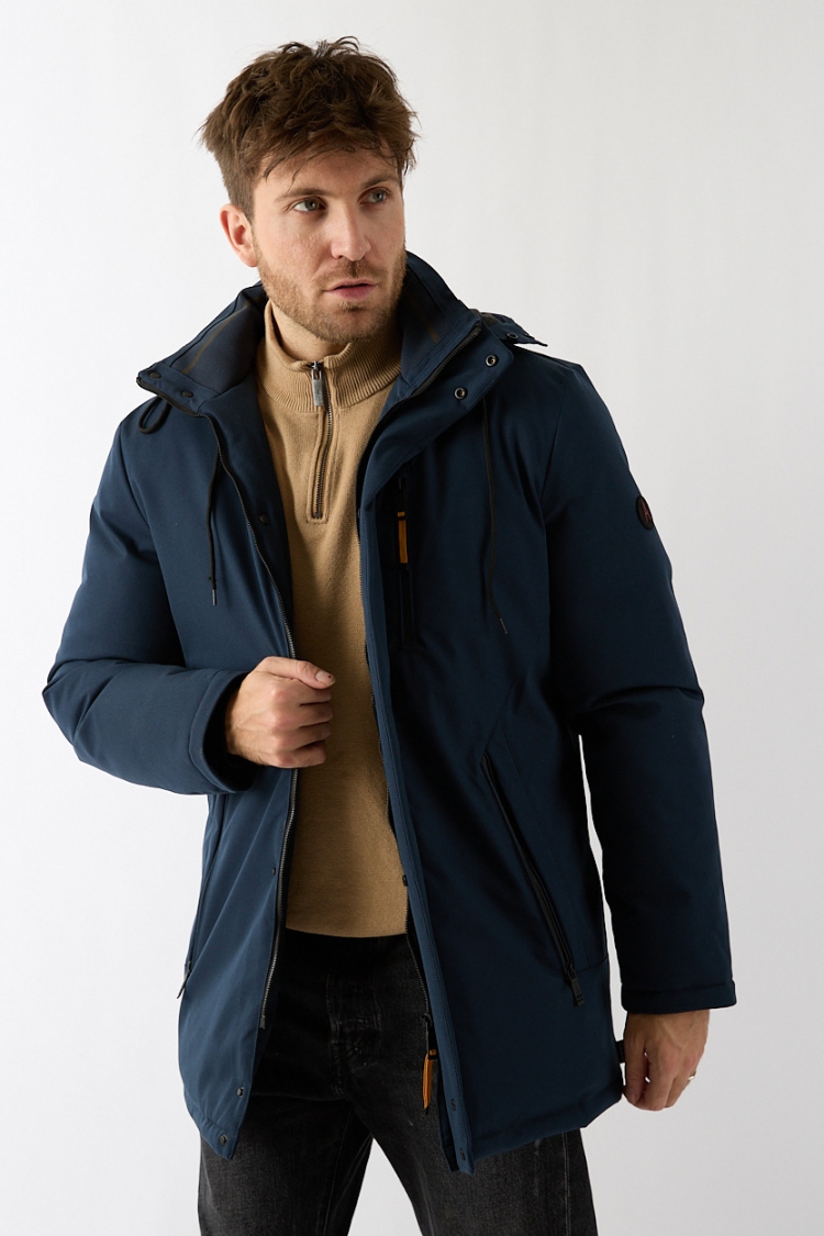 Deze parka in donkerblauw is windicht en waterafstotend. Door de net iets langere lengte is de jas behaaglijk warm en valt de jas ook mooi over een colbert. De capuchon is afneembaar en de jas is voorzien van binnenzakken voor extra gemak. Verkrijgbaar tot en met maat 3XL.