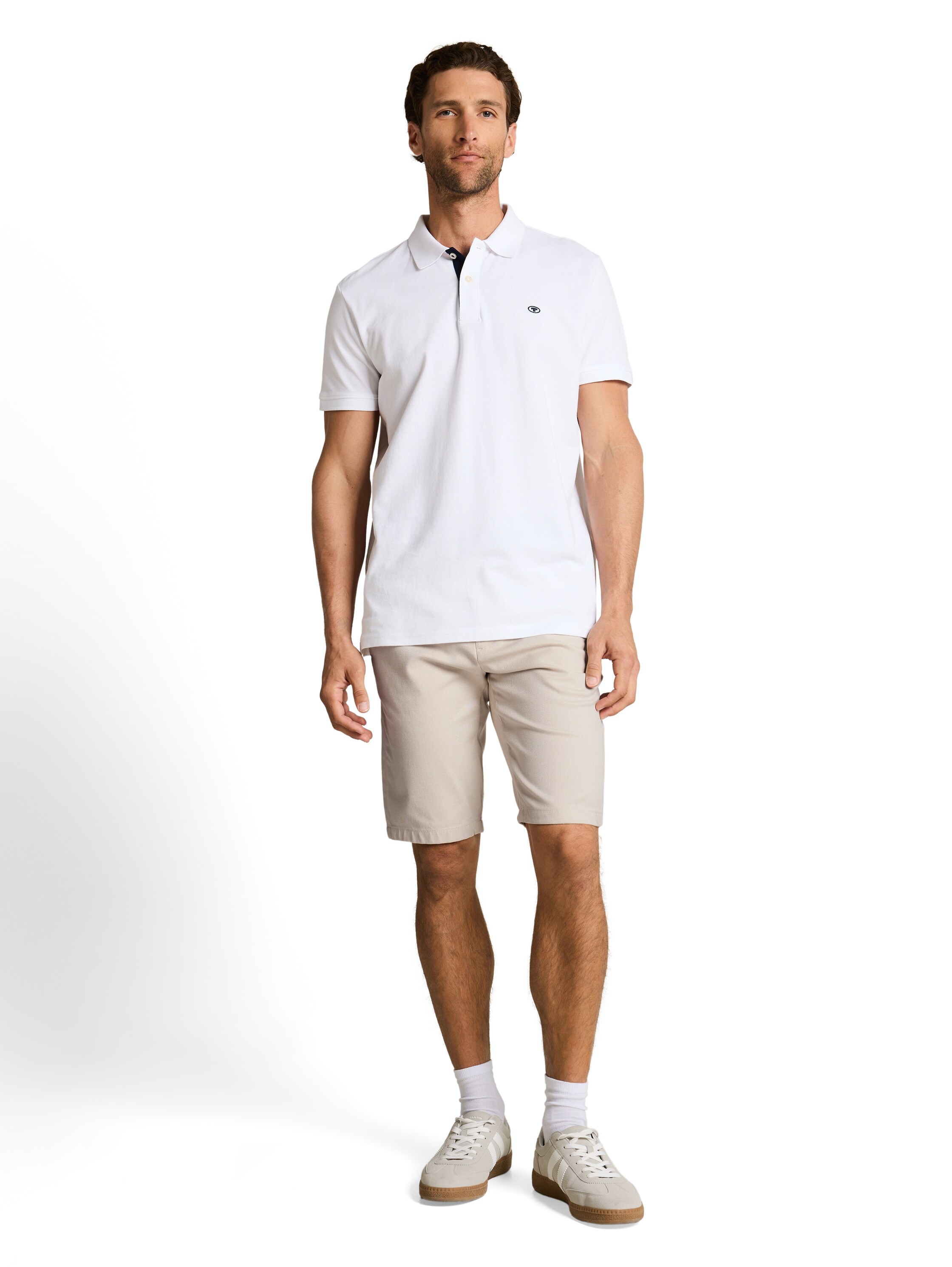 Deze korte broek van Tom Tailor is uitgevoerd in een chinomodel. De broek valt tot op de knie en heeft daarmee een nette, verzorgde uitstraling. Hierdoor is hij goed te dragen als geklede korte broek, bijvoorbeeld met een polo of overhemd.