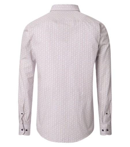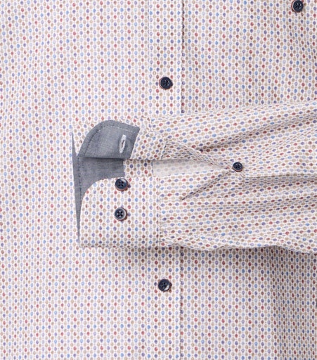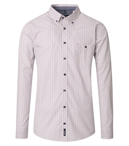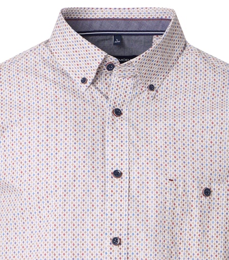Dit overhemd van Casa Moda heeft een motiefje in de tinten: blauw, bruin, rood en blauw op een lichte ondergrond. Het overhemd is door de kleurstelling heel gemakkelijk te combineren.