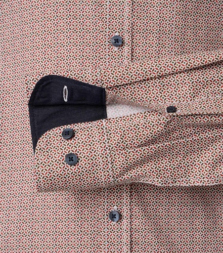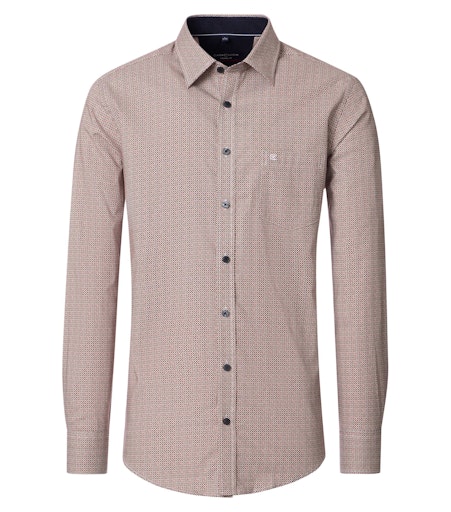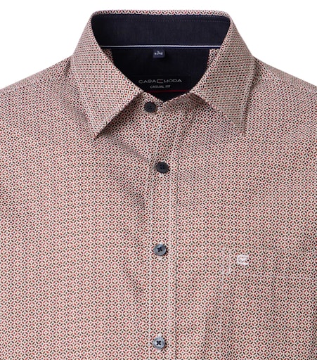 Dit overhemd van Casa Moda heeft een overlappend cirkelmotief op een witte ondergrond. Omdat er zowel, blauw- diep oranje-, zand- en groen-tinten in het motief zitten, is dit overhemd heel gemakkelijk te combineren met de meest uiteenlopende kleuren vesten en truien. Het overhemd valt vrij ruim, (bijna 1 maat groter)Ingekocht tot 3xxxl, die maat kan dus bijna doorgaan voor 4xxxxl.