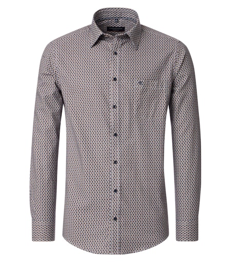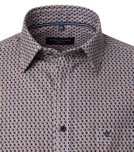 Dit overhemd van casa Moda heeft een kentkraag. Het patroon bestaat uit bruin tinten. Het overhemd valt niet heel strak. Het shirt valt gemakkelijk te combineren met casual kleding en ook met een colbert matcht dit overhemd goed. Hetzelfde shirt is er ook met een patroon in blauw en bruin.
