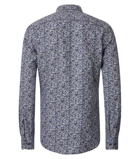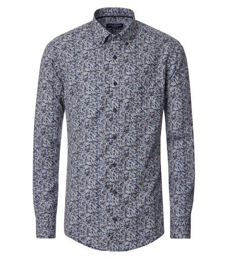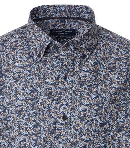 Dit overhemd van casa Moda heeft een button downkraag en een borstzak. Het patroon is blauw met beige bruin tinten. Het overhemd valt niet heel strak.