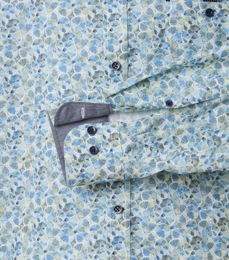 Heren overhemd met button-down kraag. Blauw-groen motief, borstzak