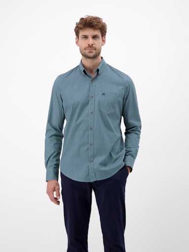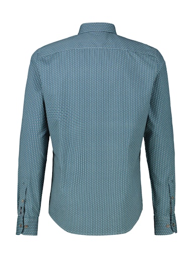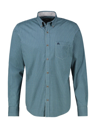 Dot overhemd van Lerros in een mooie zeegroene kleur. Kan heel goed gecombineerd worden met jeans en donkerblauw maar ook met lichtere kleuren is het shirt een goede combinatie. met borstzak en een kraag met knoopjes.