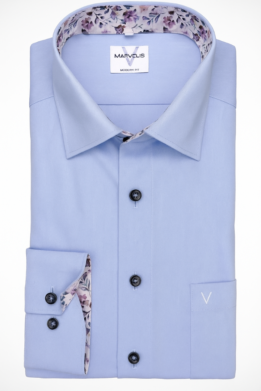 Dit Marvelis overhemd is een heel fijn basis shirt. Voor onder een colbert, onder een kostuum en zelfs op een spijkerbroek een prima combinatie. Het overhemd valt niet superstrak en heeft een borstzak.