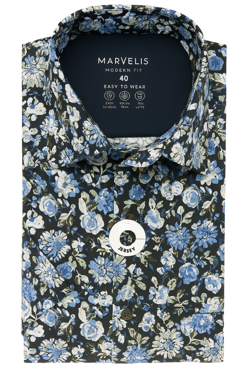 Dit Marvelis overhemd is een heel comfortabel shirt. Het is gemaakt van tricot en draagt net zo comfortabel als een t-shirt terwijl het de uitstraling van een overhemd heeft. In een bloemmotief met groen.
