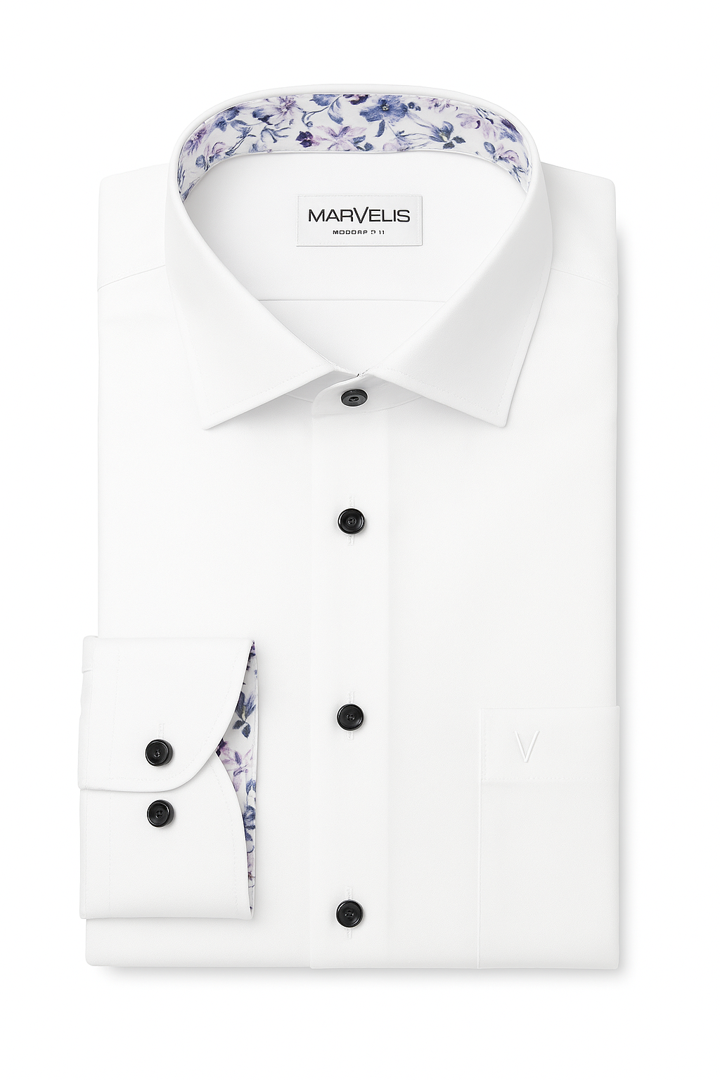 Dit Marvelis overhemd is een heel fijn basis shirt. Voor onder een colbert, onder een kostuum en zelfs op een spijkerbroek een prima combinatie. Het overhemd valt niet superstrak en heeft een borstzak.