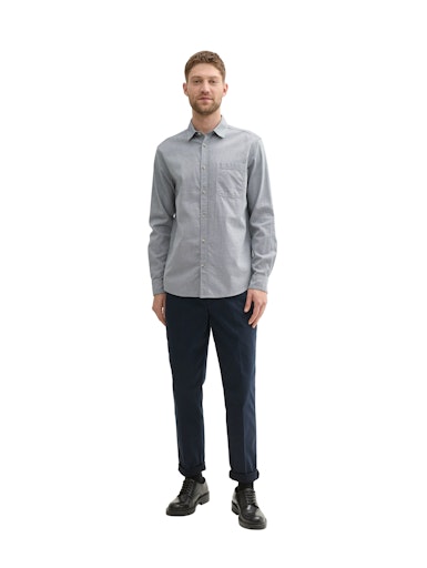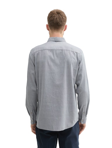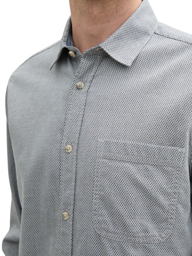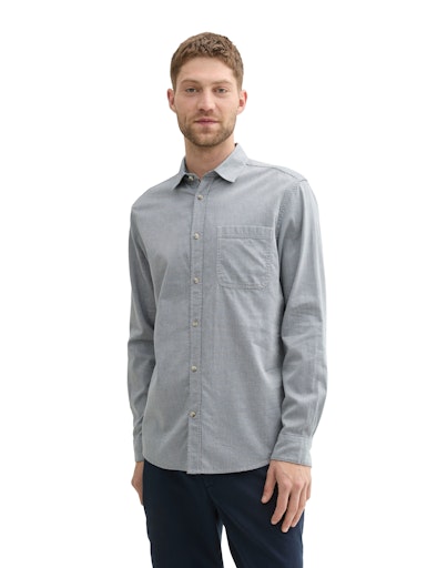 Overhemd van Tom Tailor dat ook goed los gedragen kan worden met een t-shirt er onder. De stof is wat steviger. Het kleine ruitje is ingeweven en de blouse heeft een borstzak.