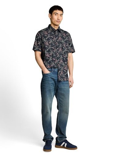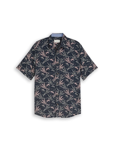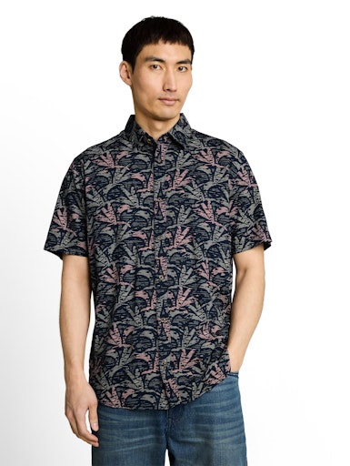 Tom Tailor Overhemd Korte Mouw – Donkerblauw met Palmprint
