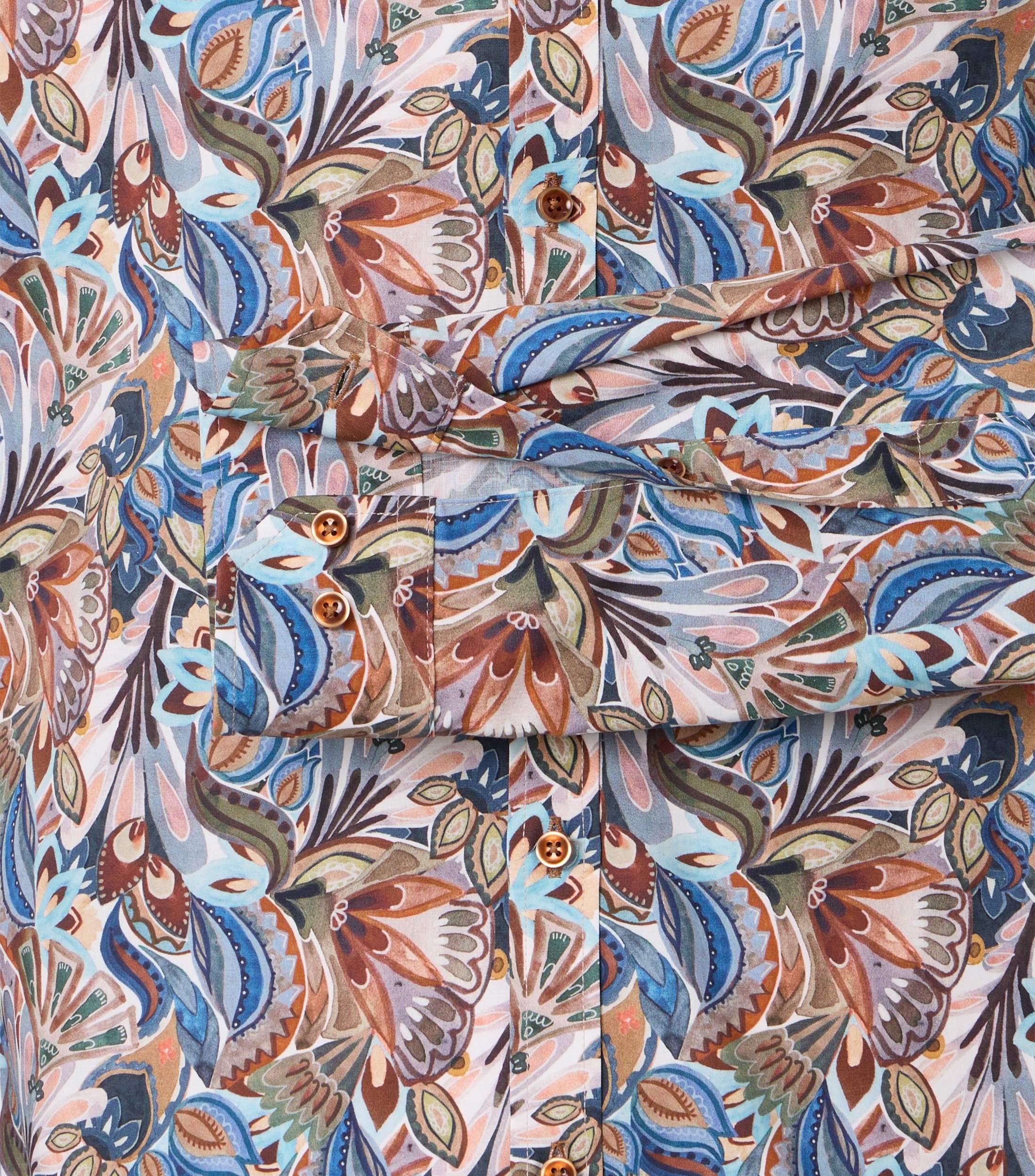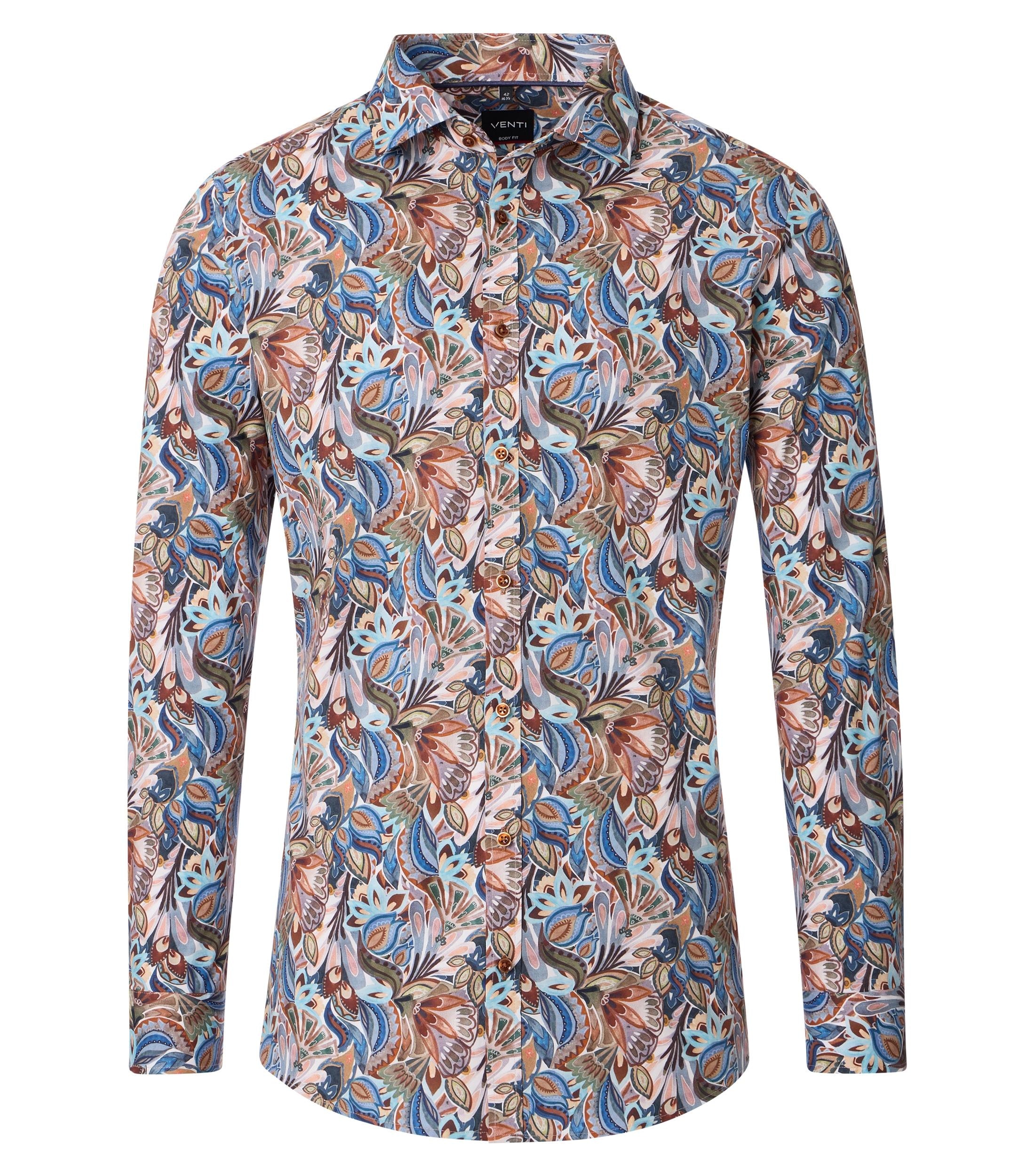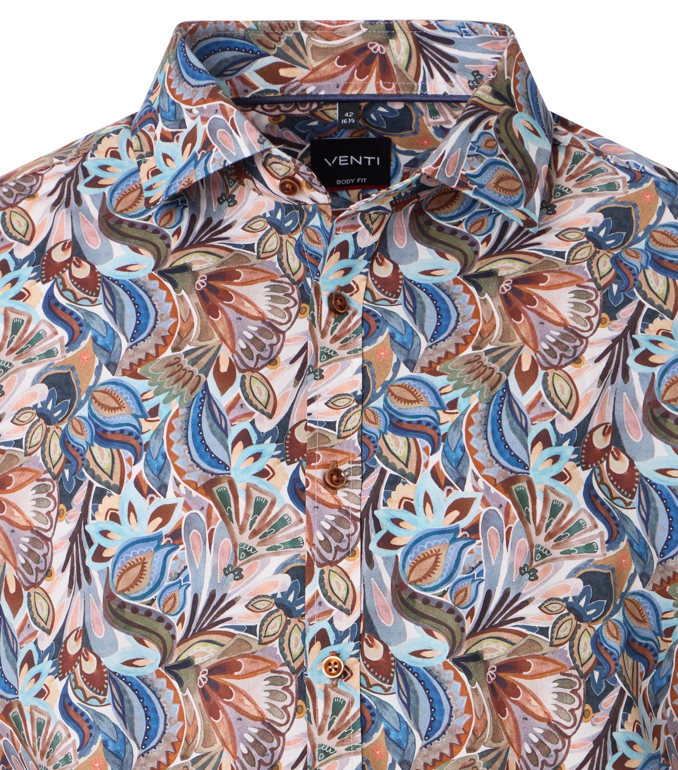 Dit overhemden van Venti hebben vaak hele mooie prints. Dit shirt is daar geen uitzondering op. Door de zachte kleuren, roze, bruine - en blauwtinten is het shirt heel eenvoudig te combineren. De shirts van Venti zijn eenvoudig in onderhoud. Wanneer u het overhemd na het wassen op een hangertje hangt, hoeft het shirt bijna niet gestreken te worden.
