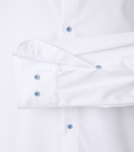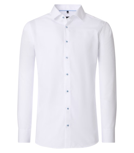 | Omschrijving | Wit city overhemd met lichtblauwe knoopjes |