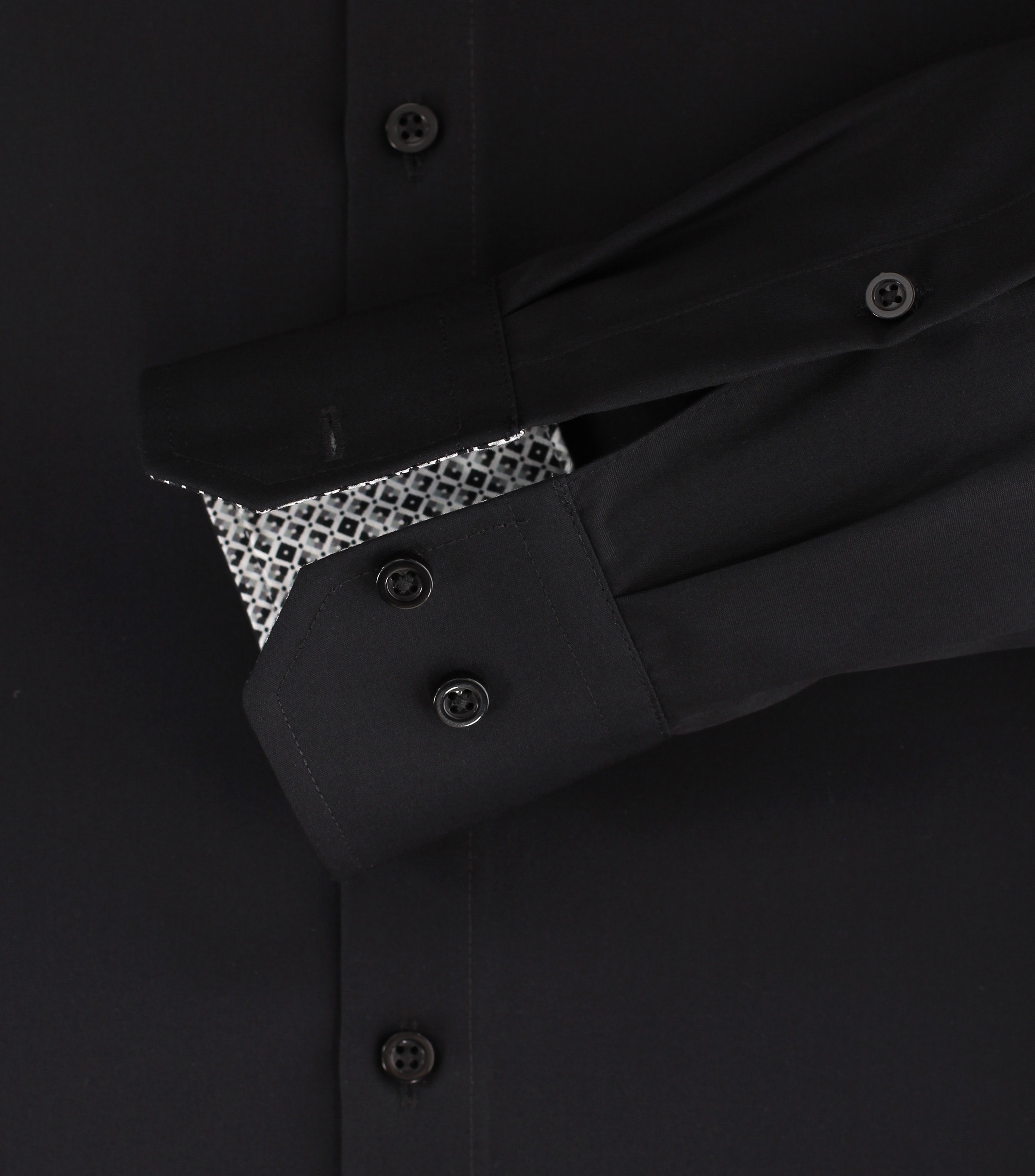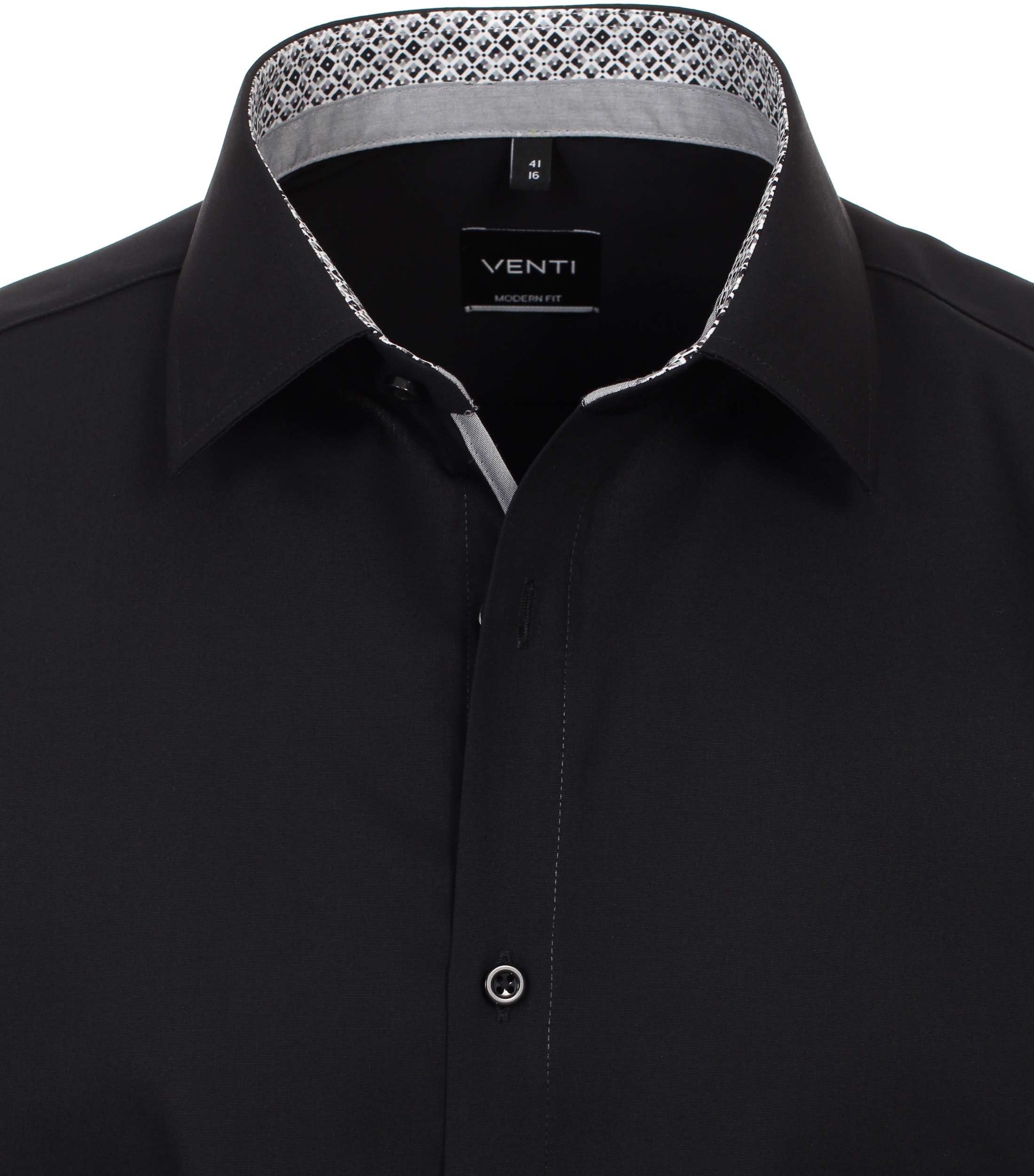 Venti heren overhemd zwart – Modern fit, contrastdetails en lichte knoopjes