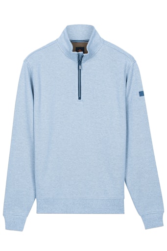 Het model heeft een korte rits (quarter zip / troyer) en een opstaande kraag, waarmee u de hals open of gesloten kunt dragen voor een sportieve uitstraling. De boorden bij de mouwen en onderzijde zorgen voor een nette pasvorm die goed in model blijft.