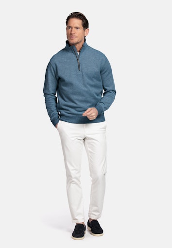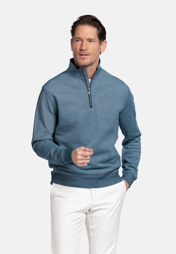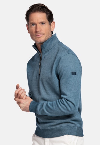 Het model heeft een korte rits (quarter zip / troyer) en een opstaande kraag, waarmee u de hals open of gesloten kunt dragen voor een sportieve uitstraling. De boorden bij de mouwen en onderzijde zorgen voor een nette pasvorm die goed in model blijft.
