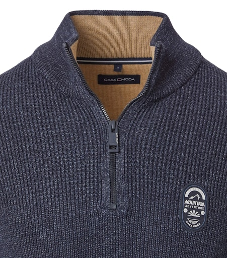 Aan het model wordt niet veel aangepast door Casa Moda en dat is maar goed ook, want dit is één van de meest favouriete truien in onze collectie. Een mooie grbreide trui met rits doorlopend in de kraag die gemaakt is in een zware kwalitet. Zonder zwaar aan te voelen. Dit jaar in het lichtblauw, een warme zand kleur en uiteraard in donkerblauw.