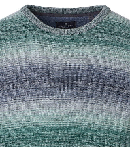 Deze pullover van Casa Moda is een comfortabele trui met ronde hals, gemaakt van 100% katoen. De trui is gebreid met een meerkleurig garen, waardoor er op een subtiele manier een streeppatroon ontstaat. Dit kleurverloop geeft de trui een eigen uitstraling, terwijl hij toch rustig en makkelijk te combineren blijft.