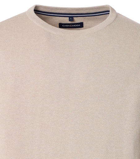 Deze zomerse trui van Casa Moda is eendunne pullover met een ronde hals, gemaakt van een fijne mix van katoen en linnen. Door het materiaal is de trui ideaal voor de warmere dagen. Verkrijgbaar in drie zomerse kleuren: zacht oranje, lichtblauw en beige.