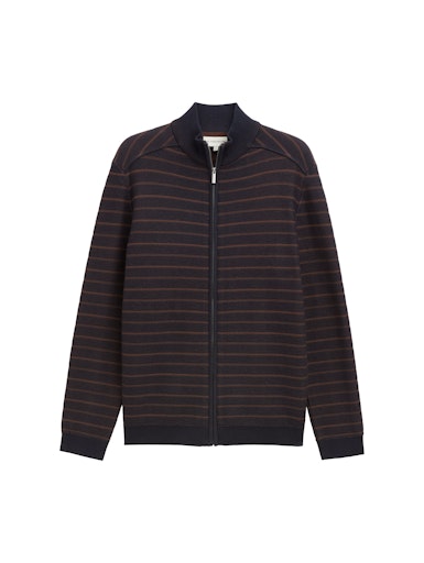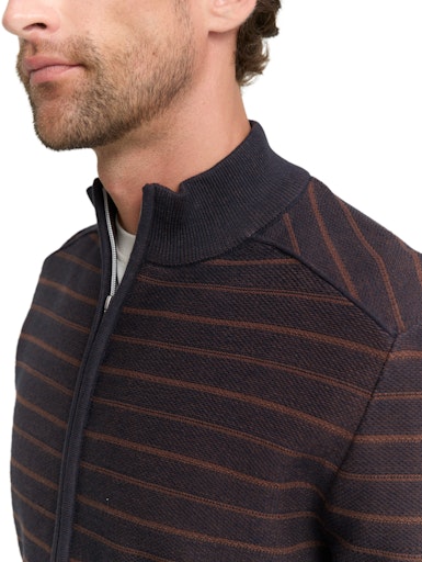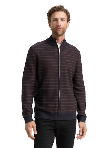 Dit donkerbruine vest van Tom Tailor krijgt een speels accent door de subtiele blauwe ingebreide streep. Het is een fijn, comfortabel model met rits en zonder zakken, waardoor het een strakke, tijdloze uitstraling heeft. Perfect te combineren met een spijkerbroek.