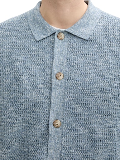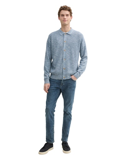 Vesten met knopen zijn in de herenmode een flinke poos uit beeld geweest. Net als de gebreide polo's maken deze vesten ook een come-back. Tom Tailor loopt vaak voorop wat het modebeeld betreft en dit vest is daar een goed voorbeeld van. Het heeft een gemêleerde grijsblauwe kleur, een zachte tint die zich makkelijk laat combineren. De pasvorm is regular fit, wat betekent dat het wat wijder valt.